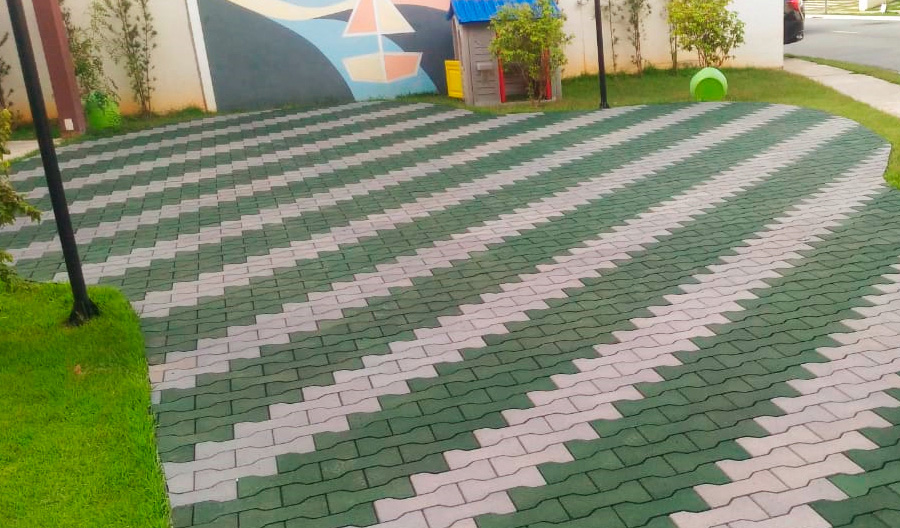 Além da beleza, segurança e durabilidade, o piso Ossinho é ecologicamente correto, sendo fabricado à base de resina e 100% borracha reciclada.